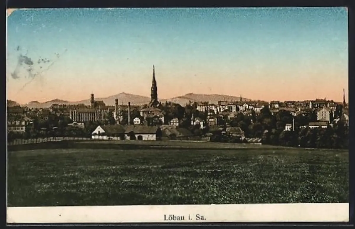 AK Löbau i. Sa., Stadtpanorama mit Kirche