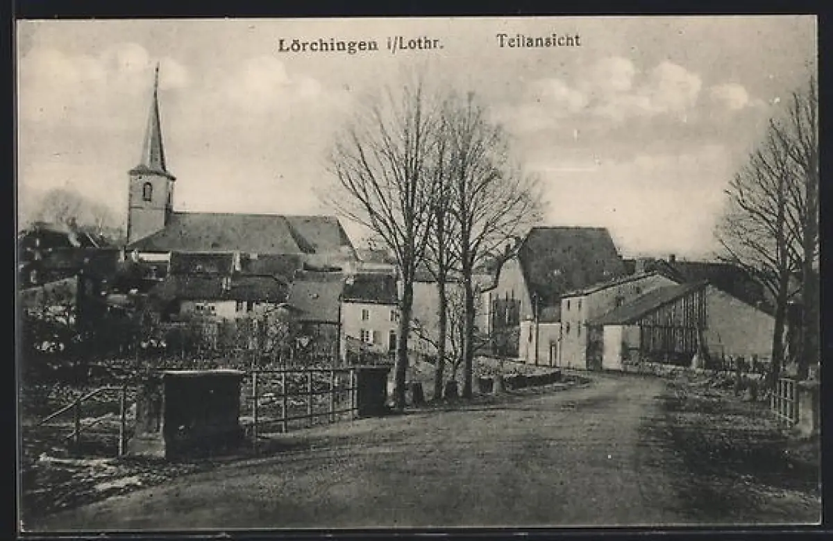 AK Lörchingen /Lothr., Teilansicht mit Kirche und umliegenden Gebäuden