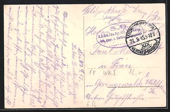 alte Ansichtskarte, gelaufen 1915 als Feldpost, guter Zustand