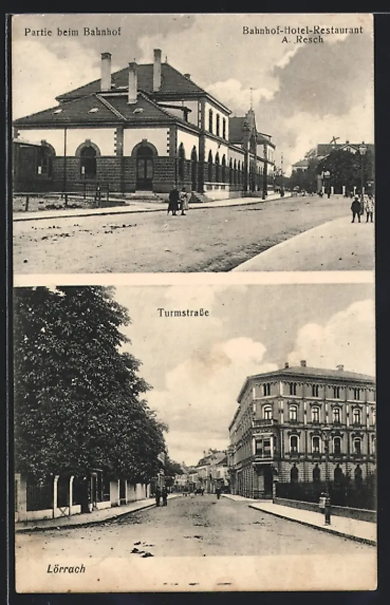 AK Lörrach, Bahnhof-Hotel-Restaurant A. Resch u. Partie beim Bhanhof, Turmstrasse