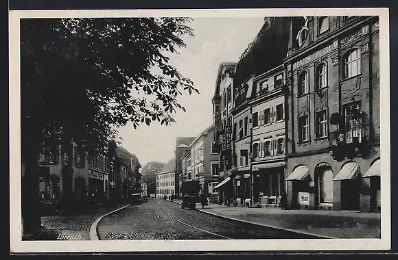 AK Lörrach, Blick in die Strasse u. Cafe Pape