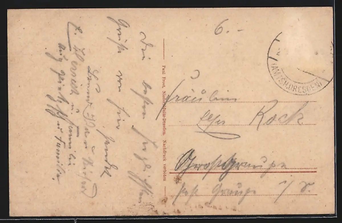 alte Ansichtskarte, gelaufen, Briefmarke entfernt, guter Zustand