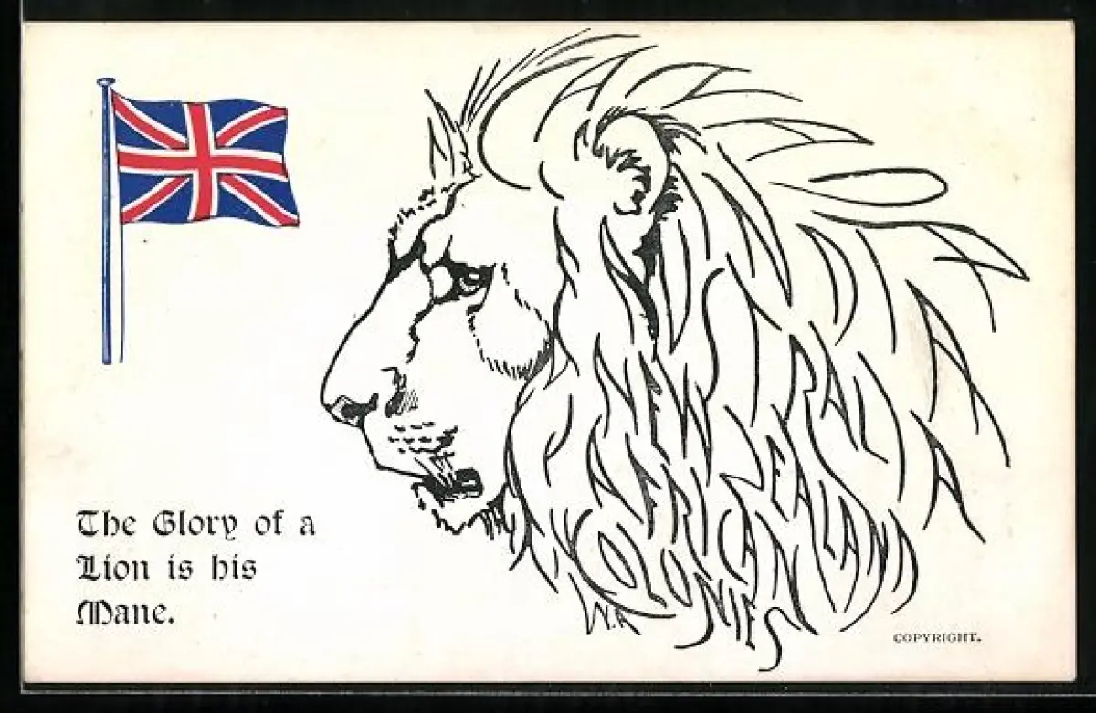 AK Löwenkopf und britische Flagge, The Glory of a Lion is his Mane, Propaganda Entente