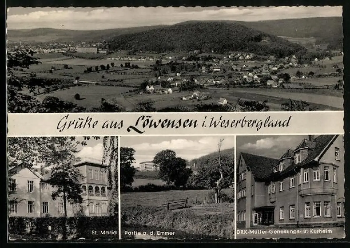 AK Löwensen i. Weserbergland, St. Maria, Partie a. d. Emmer, DRK-Mütter-Genesungs- u. Kurheim