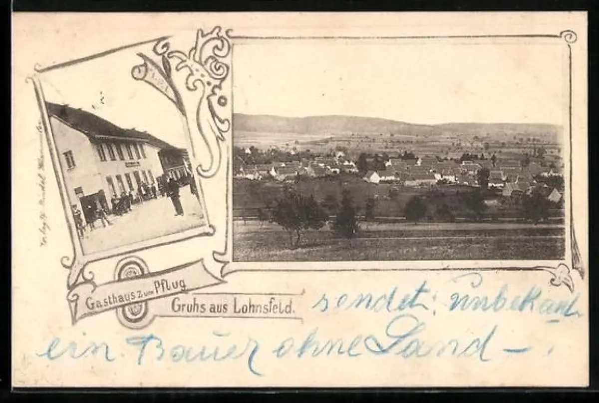 AK Lohnsfeld, Gasthaus zum Pflug, Ortsansicht aus der Vogelschau