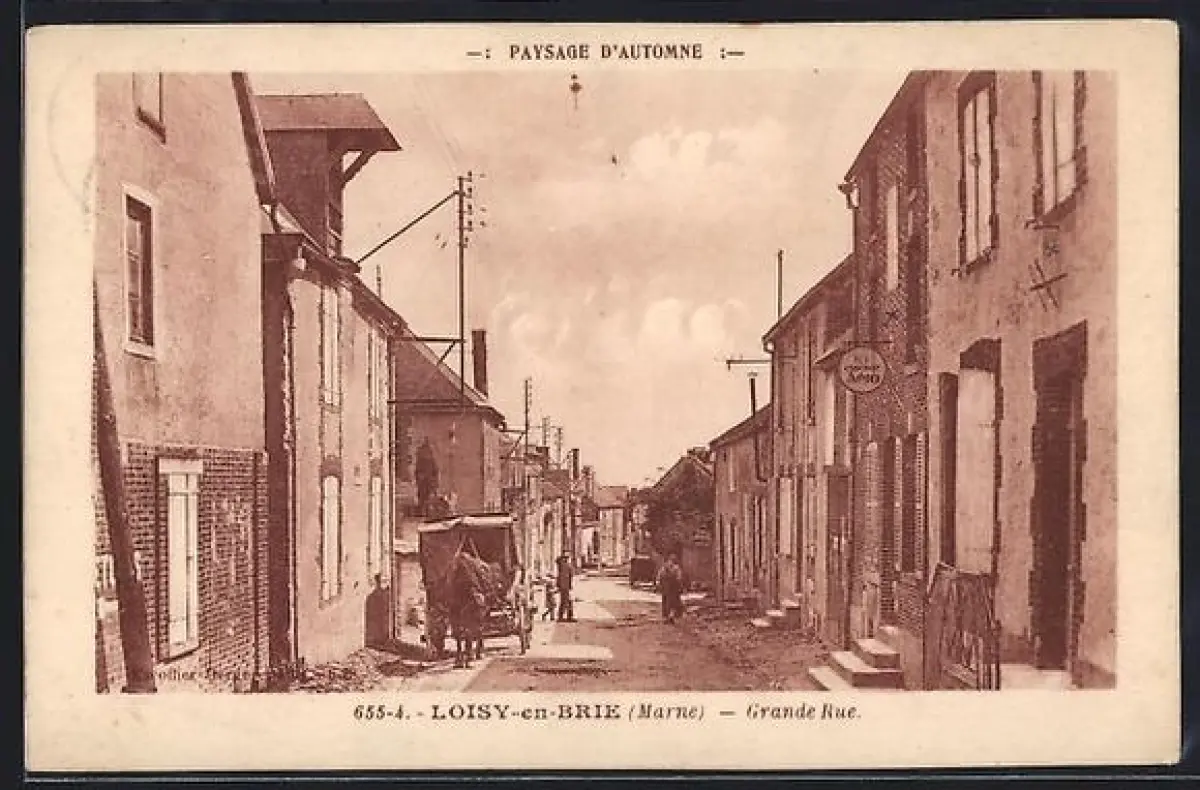 AK Loisy-en-Brie /Marne, Grande Rue avec charrette et bâtiments d`automne