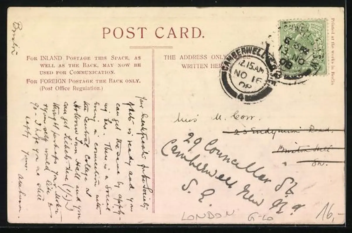 alte Ansichtskarte, gelaufen 1908, guter Zustand