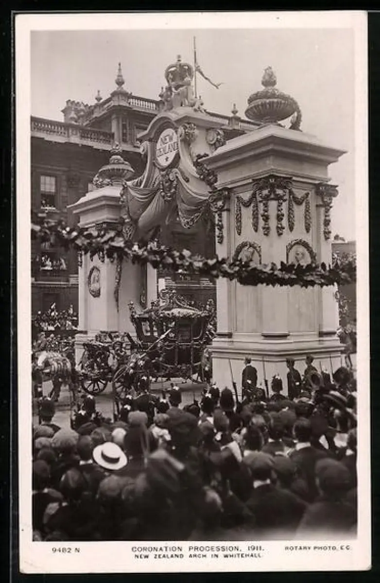 AK London, Coronation Procession 1911, New Zealand Arch in Whitehall