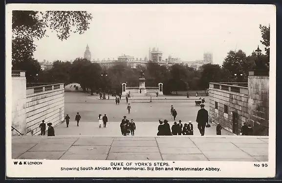 AK London, Duke of York`s Steps, Showing South African War Memorial, Big Ben and Westminster Abbey