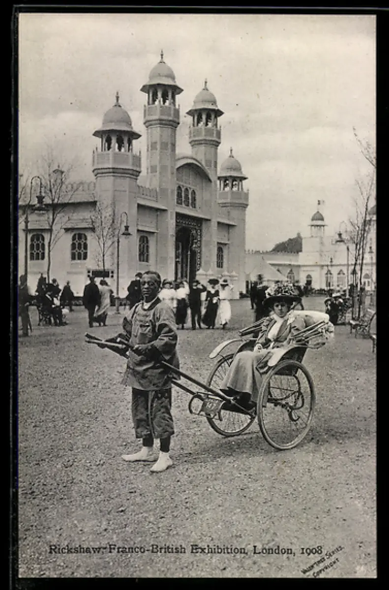 AK London, Franco-British-Exhibition 1908, Rickshaw