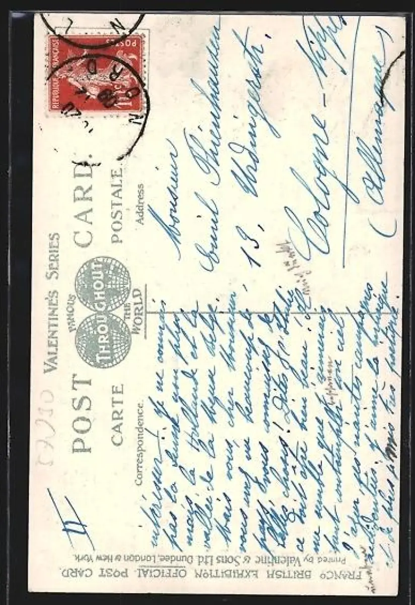 gelaufen 1909, Eckknick oben li., guter Zustand
