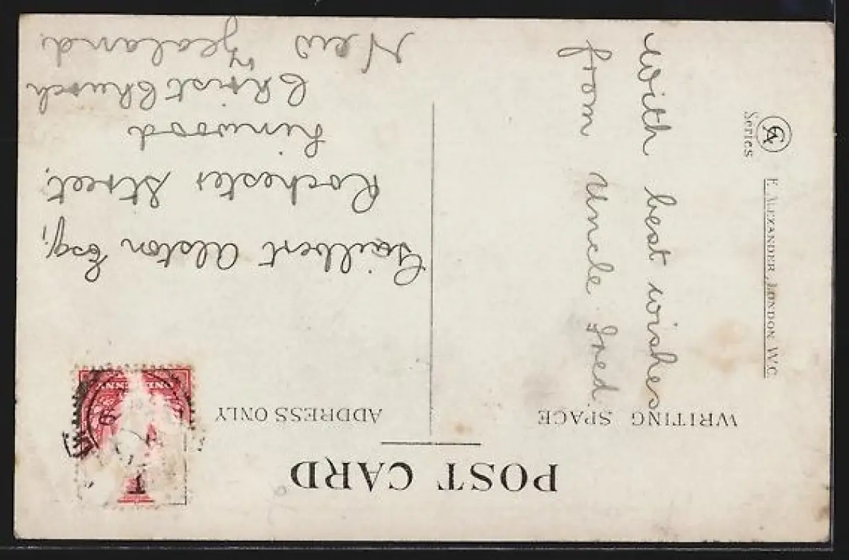 alte Ansichtskarte, gelaufen, Briefmarke entfernt, rückseitig Oberflächenschaden, guter Zustand