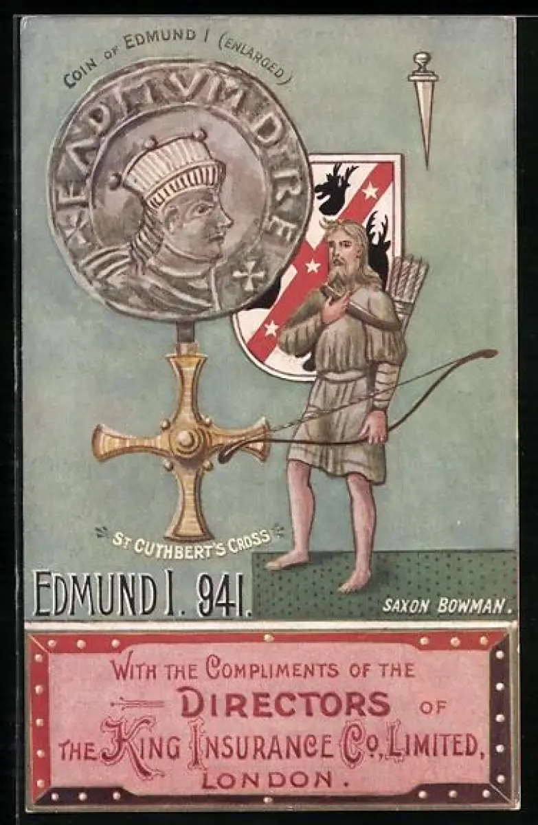 AK London, King Insurance Co. Ld., Coin of Edmund I. von England 941, St. Cuthbert`s Cross, Saxon Bowman