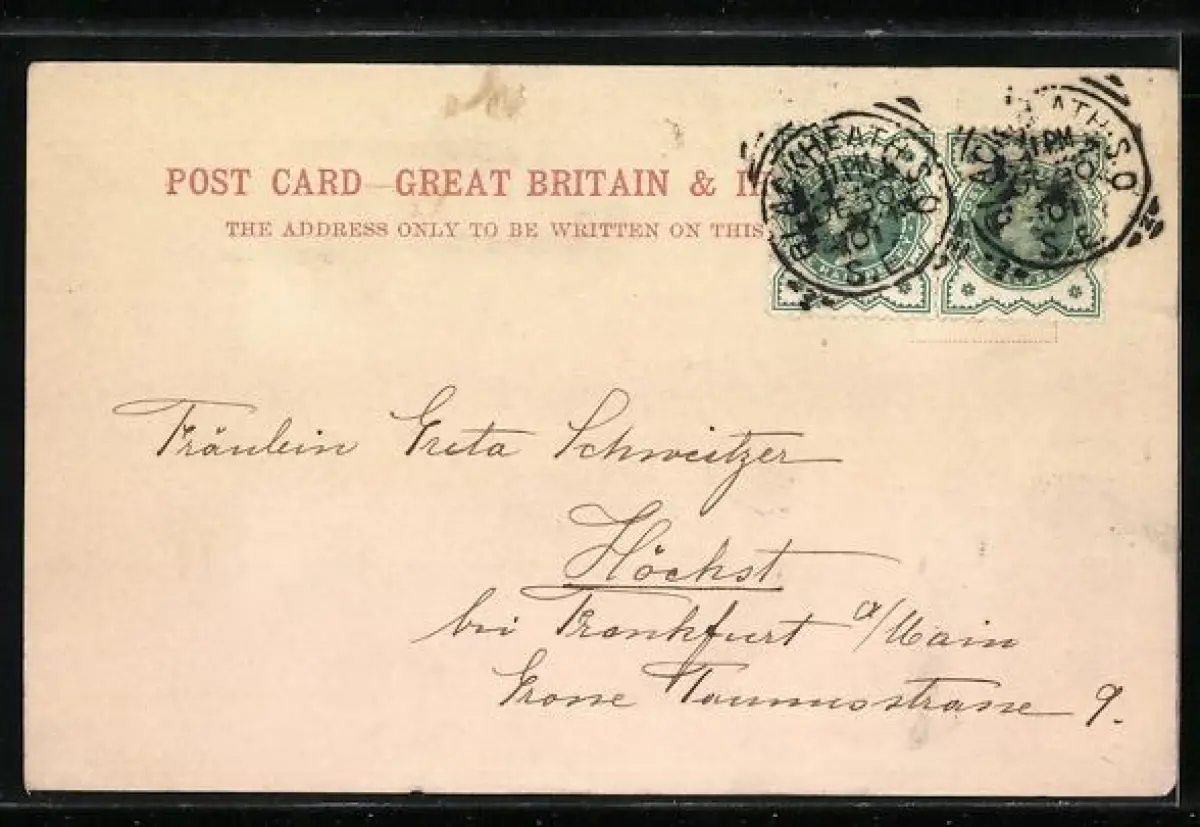 alte Ansichtskarte, gelaufen 1901, Eckknicke li. unten u. re., Stempelspur, guter Zustand