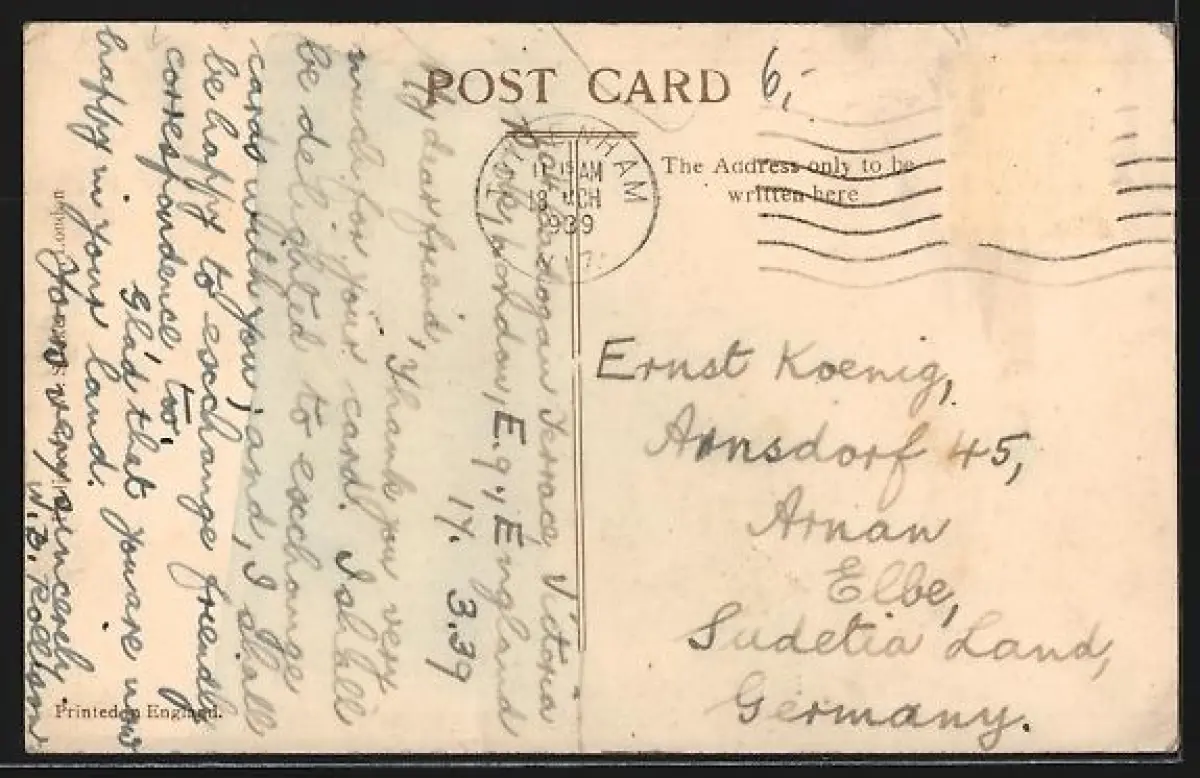 alte Ansichtskarte, gelaufen 1939, Briefmarke entfernt, guter Zustand