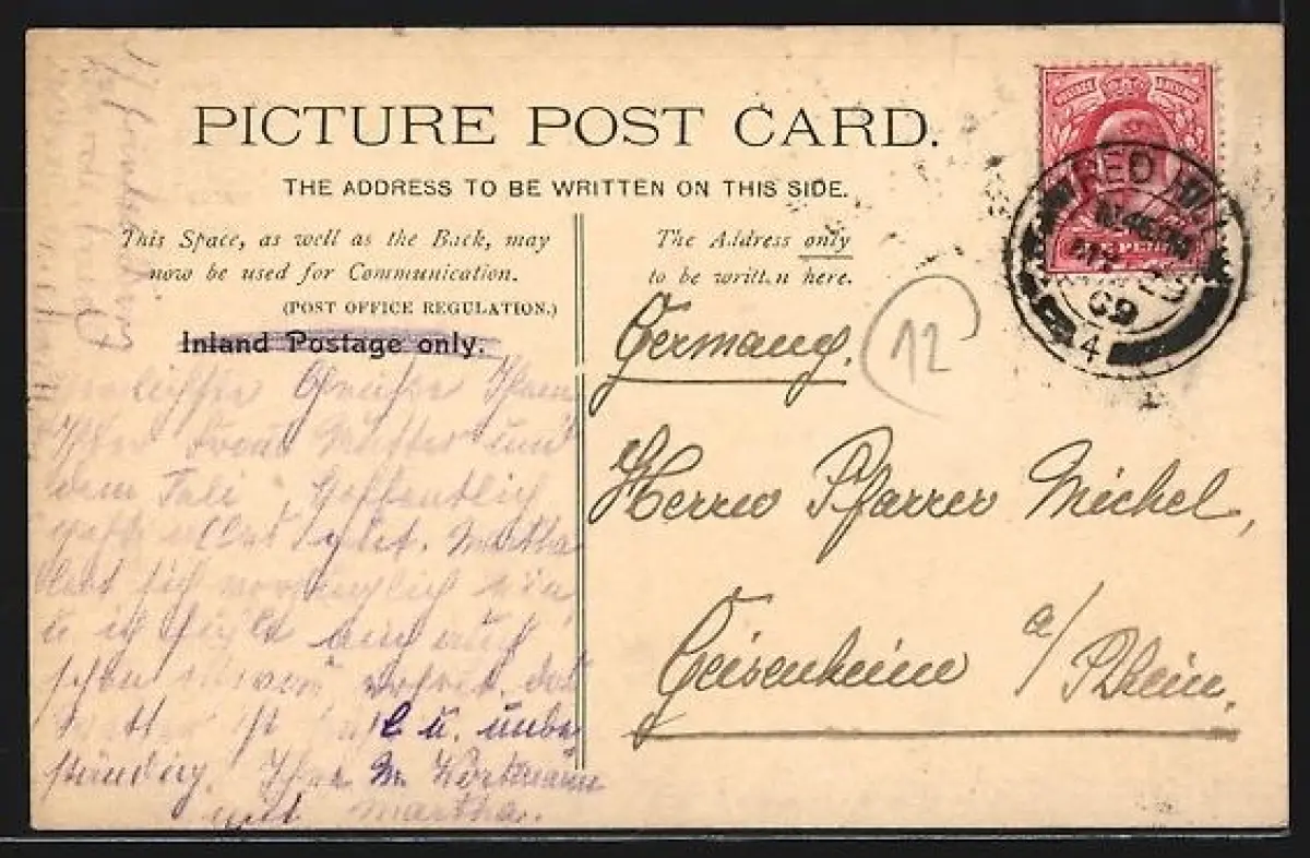 alte Ansichtskarte, gelaufen 1909, Stempelspur, guter Zustand