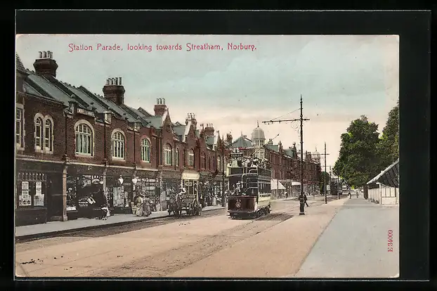 AK London, Station Parade, looking towards Streatham, Norbury, Strassenbahn