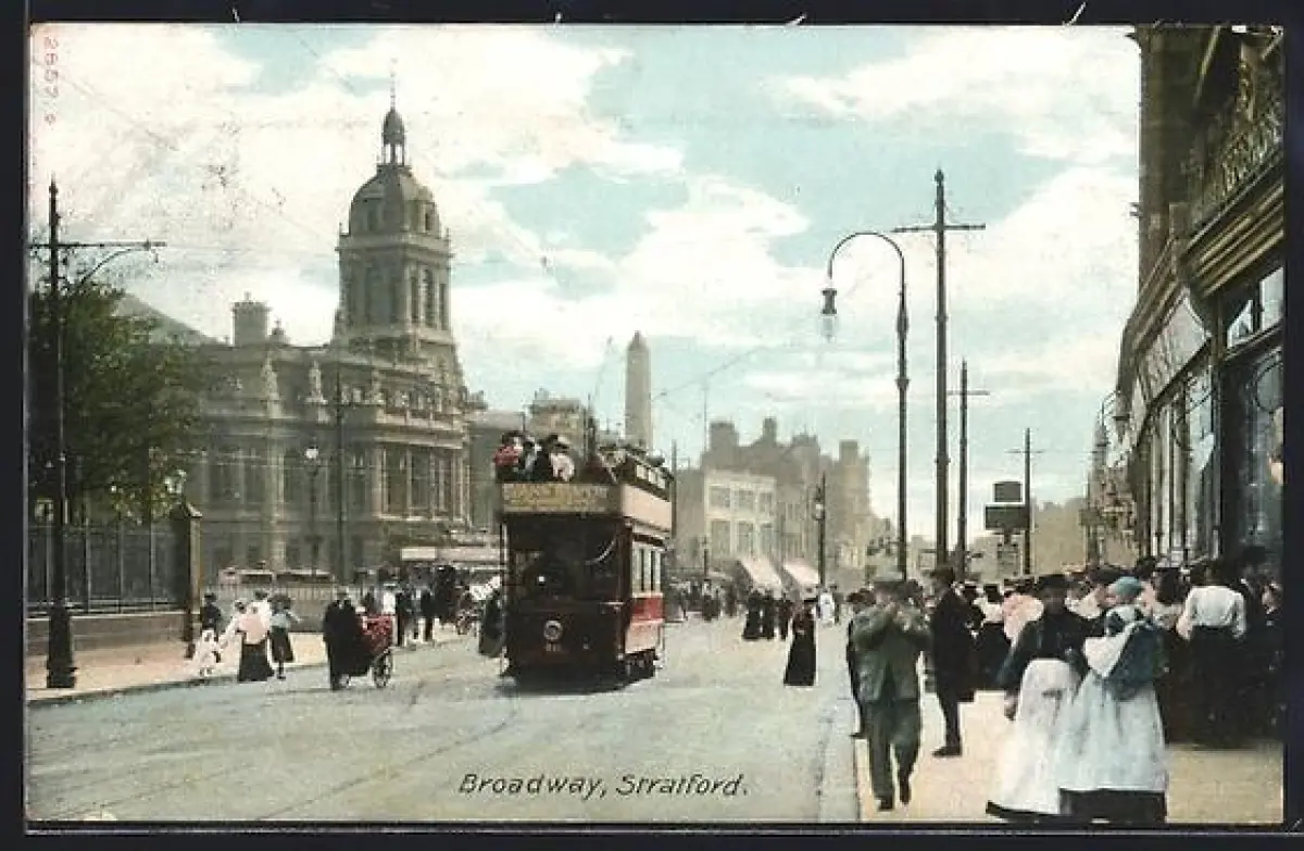 AK London, Stratford, Broadway with tramway, Strassenbahn