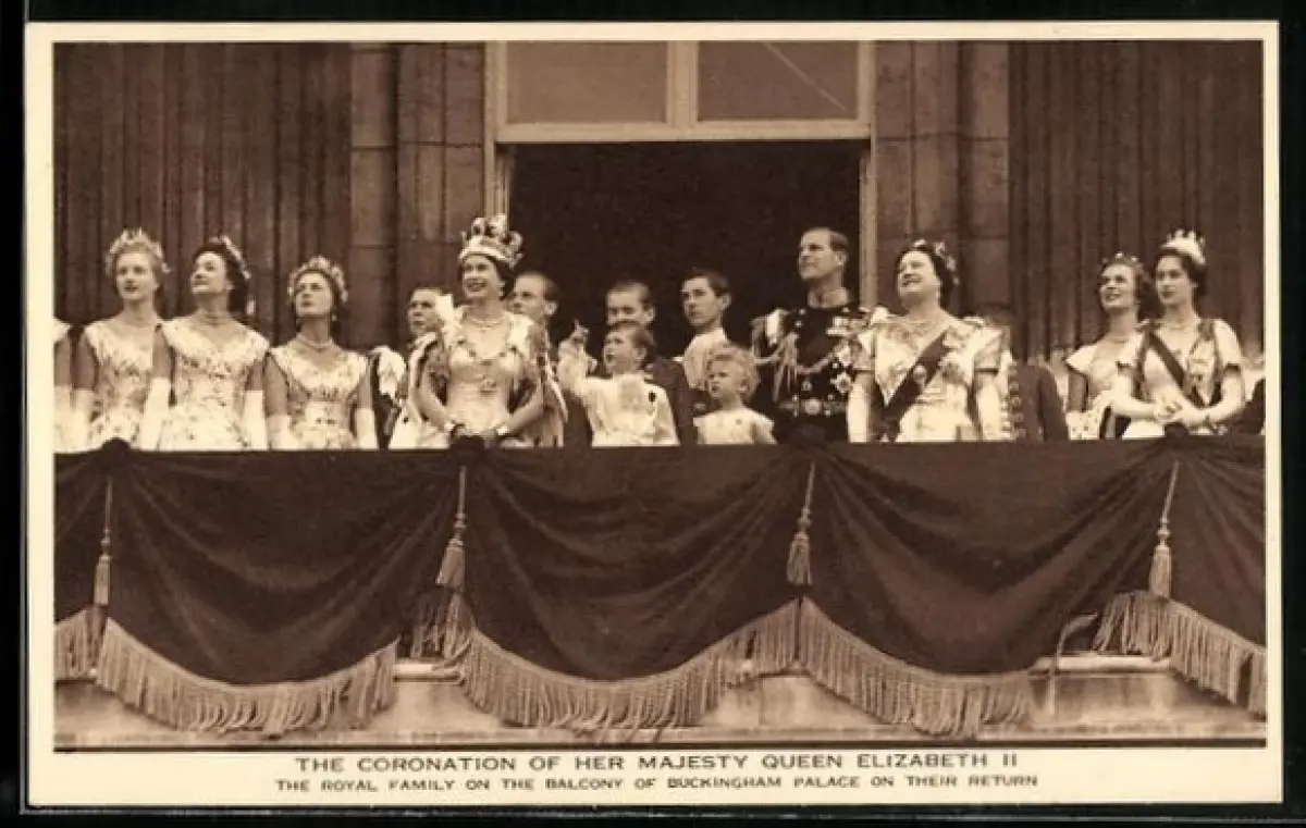 AK London, The Coronation of Queen Elizabeth II., The Royal Family on the Balcony of Buckingham Palace