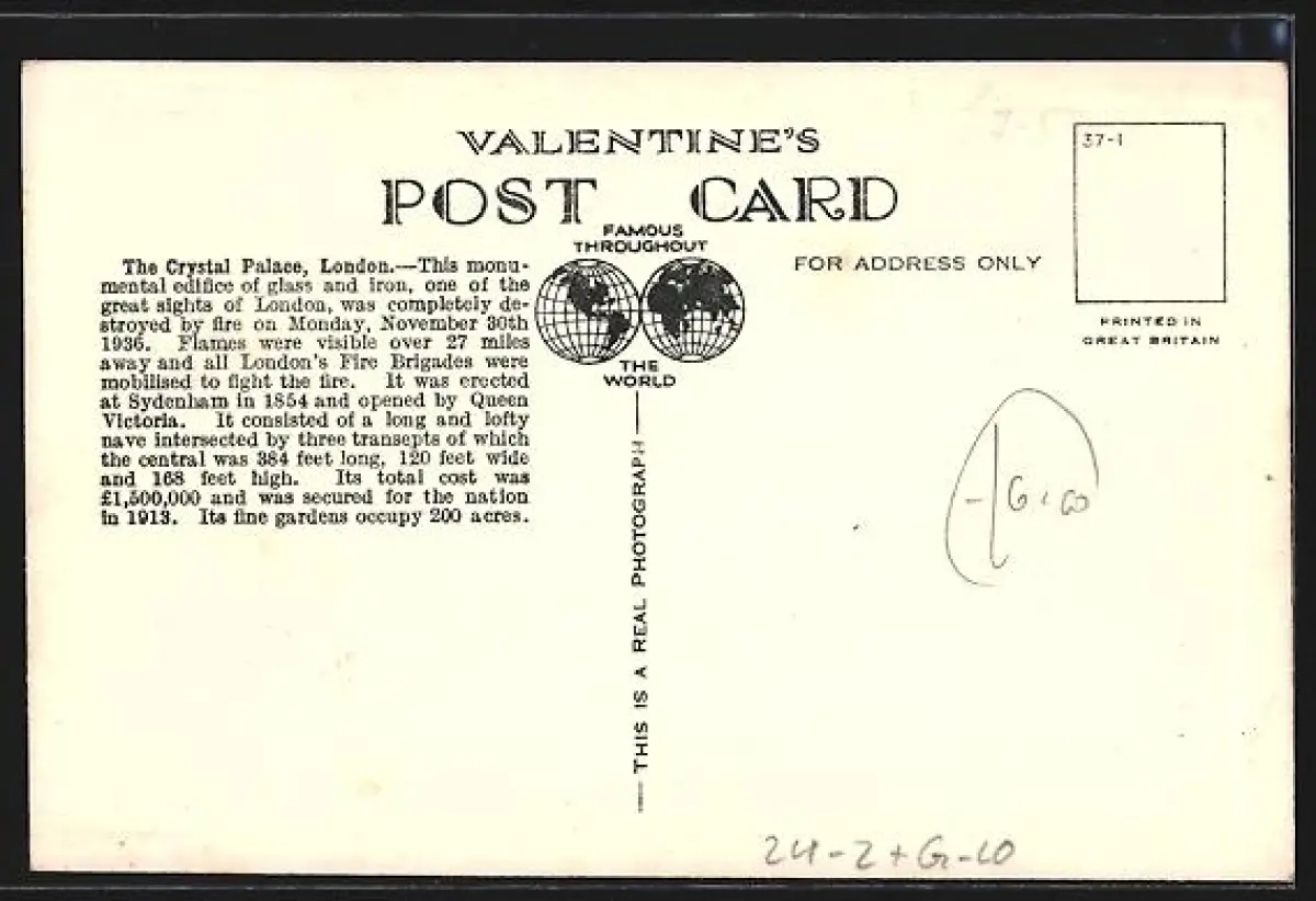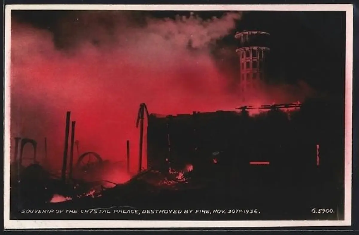 AK London, The Crystal Palace, destroyed by fire 1936, Brand