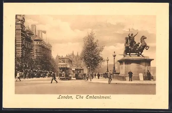 AK London, The Embankment, Strassenbahn