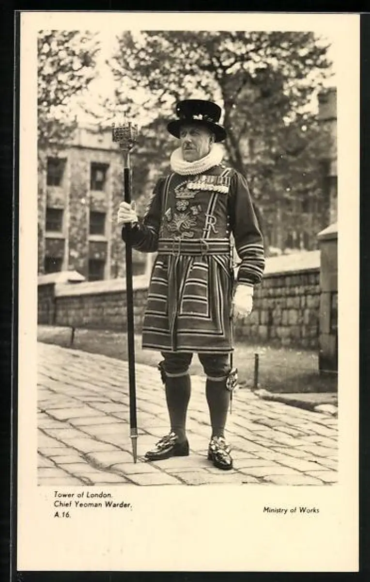 AK London, Tower of London, Chief Yeoman Warder, Britischer Soldat in Uniform
