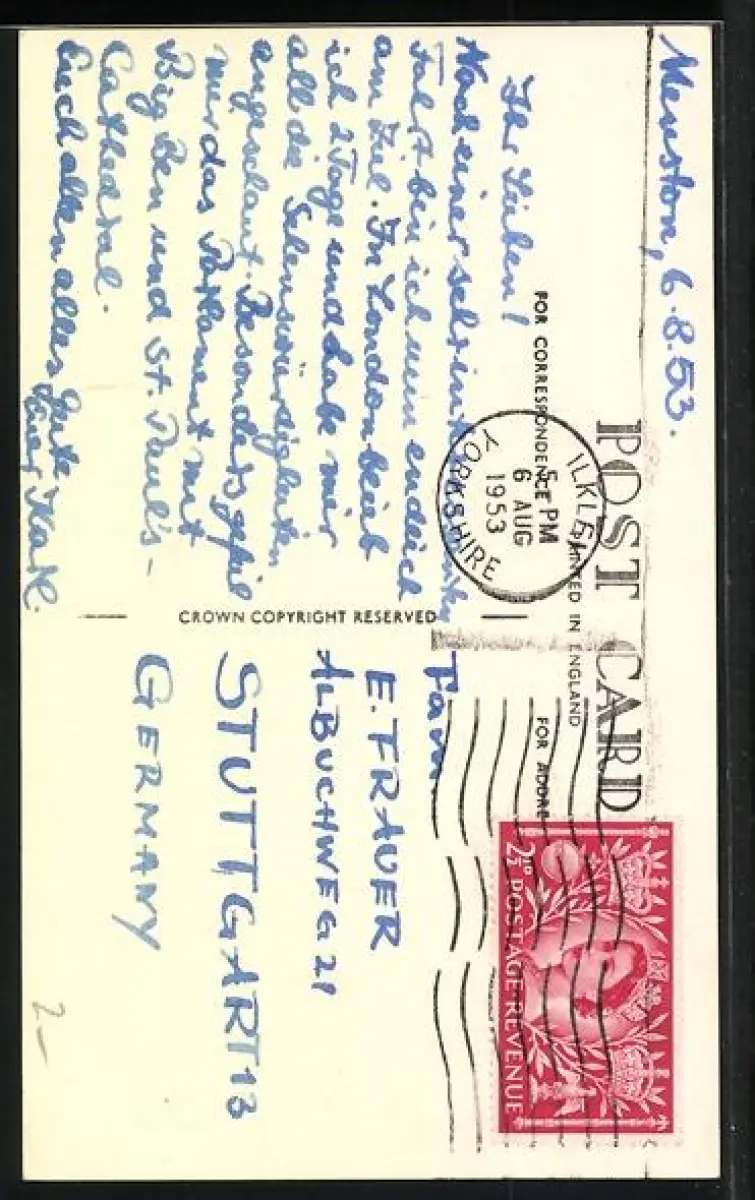 alte Ansichtskarte, gelaufen 1953, guter Zustand