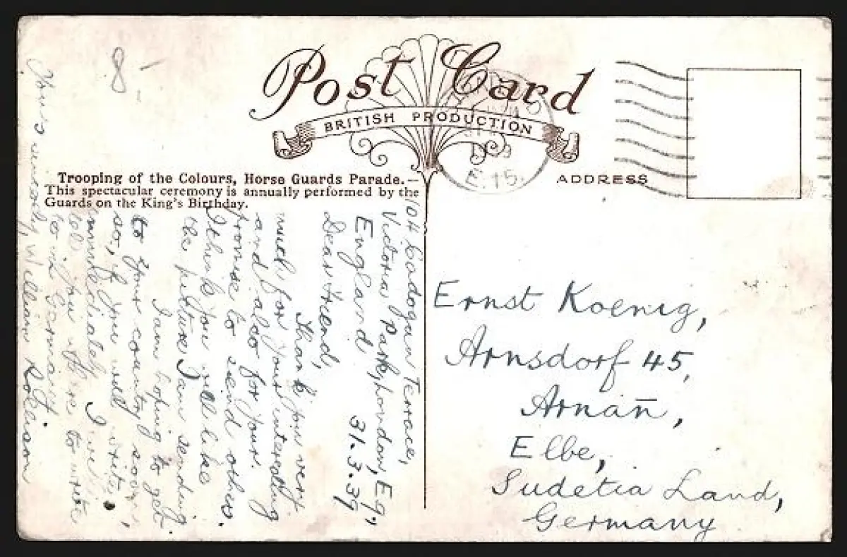 alte Ansichtskarte, gelaufen 1939, Briefmarke entfernt, guter Zustand