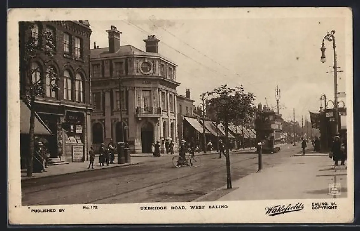 AK London, Uxbridge Road, West Ealing, Strassenbahn