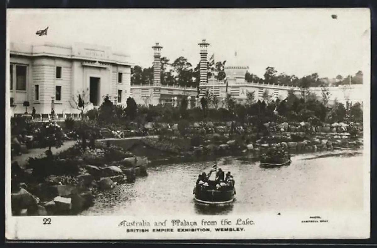 AK London, Wembley, British Empire Exhibition, Australia and Malaya from the Lake