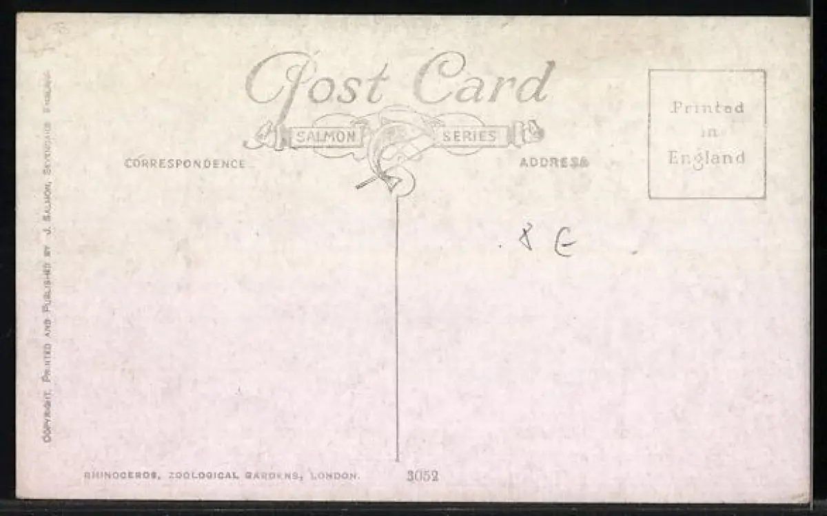AK London, Zoological Gardens, Rhinoceros, Rhinozeros im Gehege