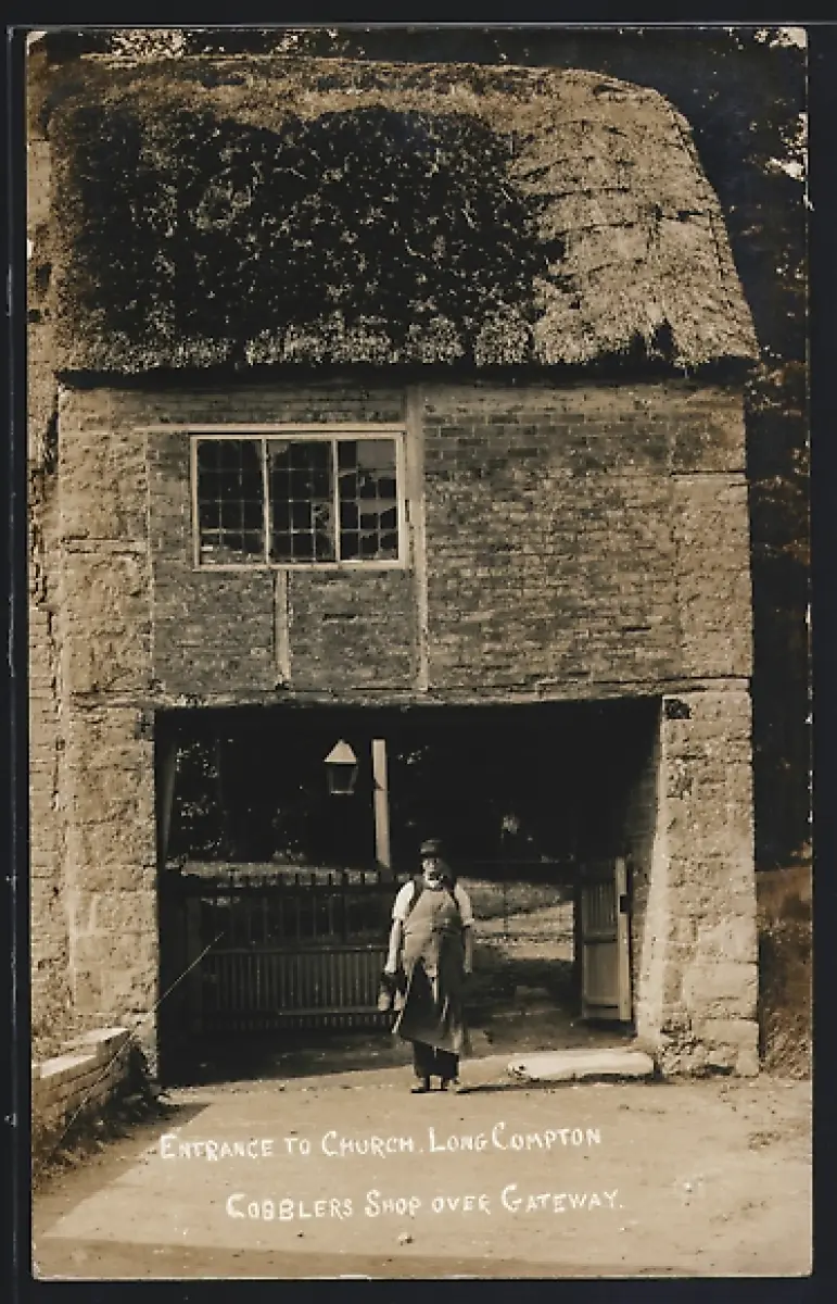AK Long Compton, Entrance to Church, Cobblers Shop over Gateway