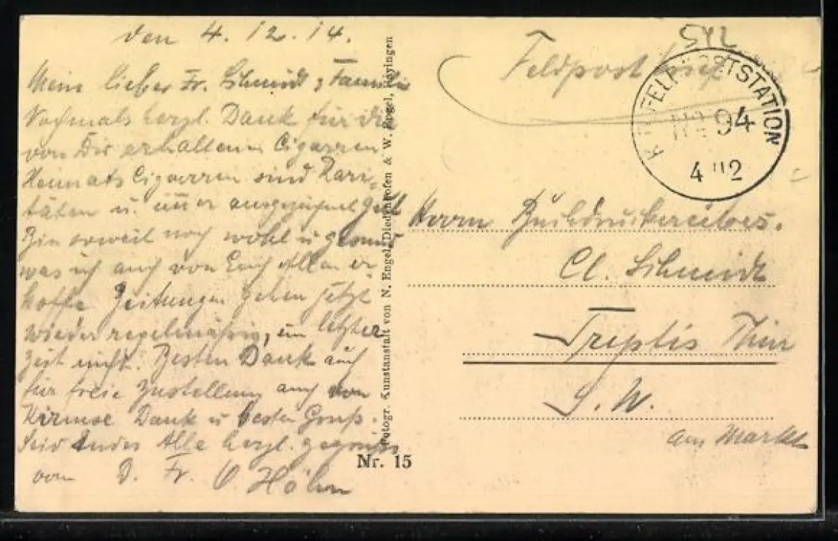 alte Ansichtskarte, gelaufen 1914, guter Zustand