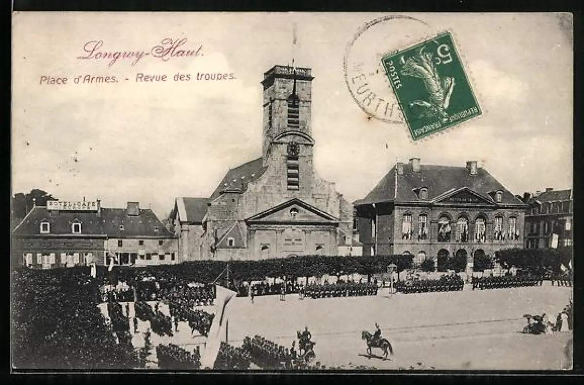 AK Longwy-Haut, Place d`Armes, Revue des troupes