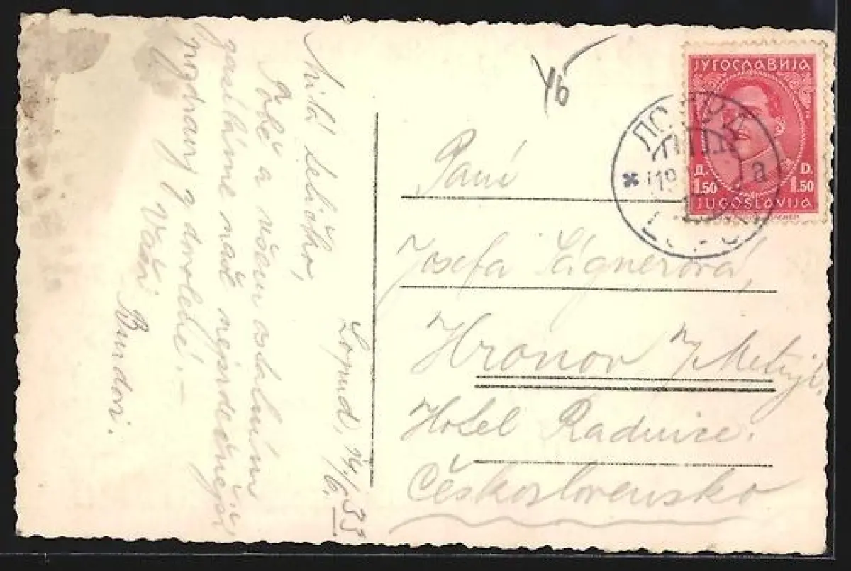 alte Ansichtskarte, gelaufen 1933, rückseitig Klebe- und Papierreste, guter Zustand