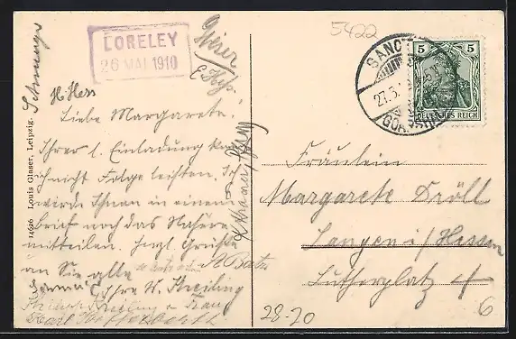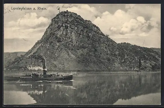 AK Loreleyfelsen am Rhein, Ortsansicht mit Dampfer