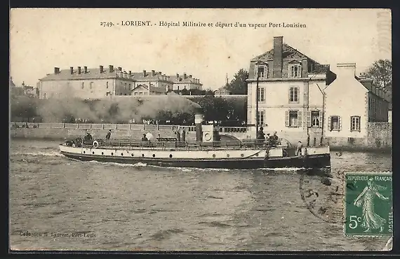 AK Lorient, Hôpital Militaire et départ d`un vapeur Port-Louisien