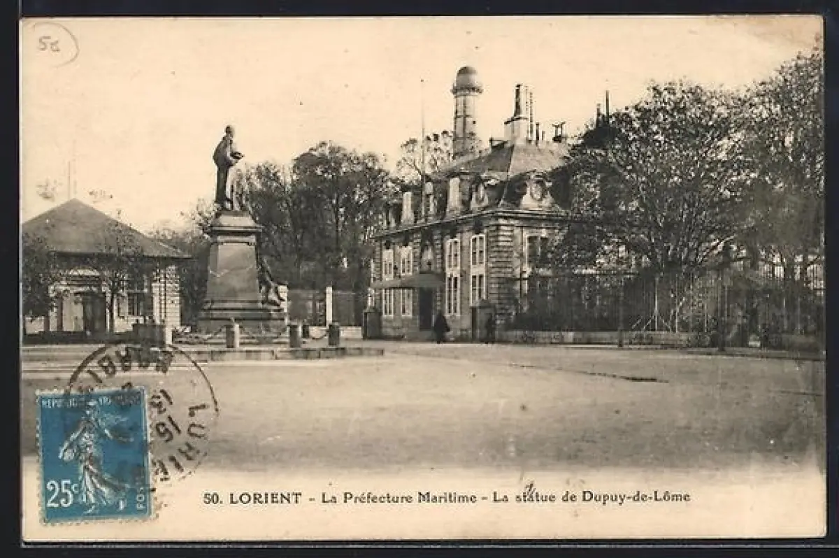 AK Lorient, La Préfecture Maritime, La statue de Dupuy-de-Lôme