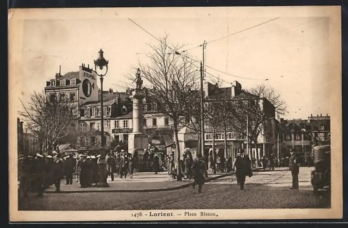 AK Lorient, Place Bisson animée avec foule et bâtiments en arrière-plan