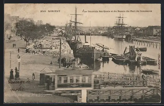 AK Lorient, Vue générale des quais et du bassin du port de commerce avec tramway