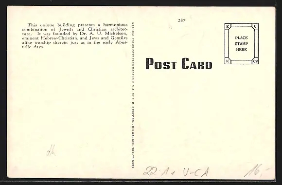 AK Los Angeles, CA, First Hebrew Christian Synagogue 2209 Michigan Ave.
