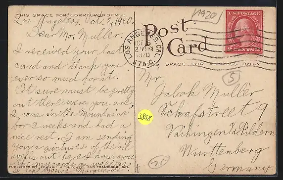 alte Ansichtskarte, gelaufen 1920, Eckknick re. oben, guter Zustand