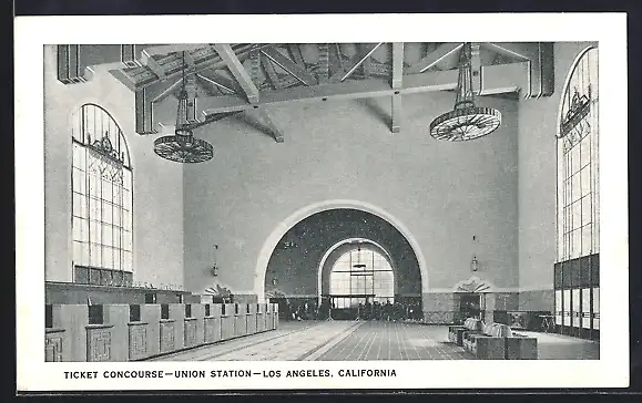 AK Los Angeles, CA, Union Station, Ticket Concourse, Bahnhof