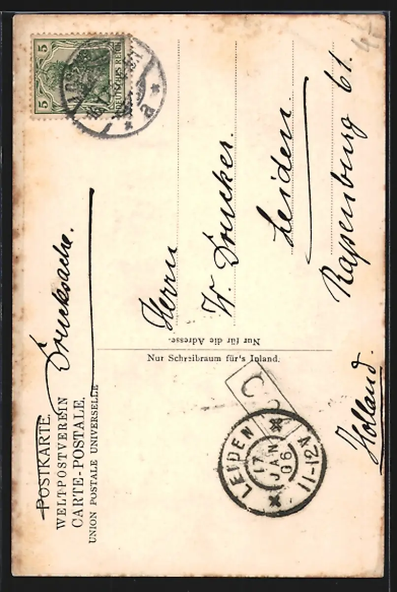 alte Ansichtskarte, gelaufen 1906, Eckknick oben links, guter Zustand