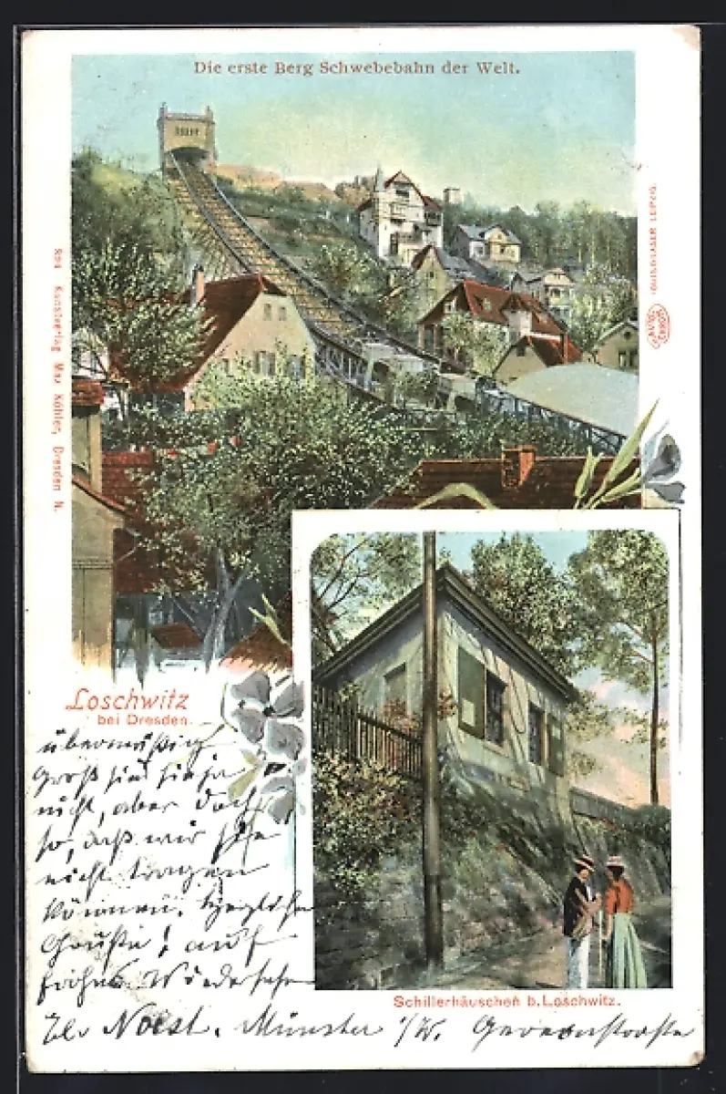 AK Loschwitz bei Dresden, Bergschwebebahn, Schillerhäuschen