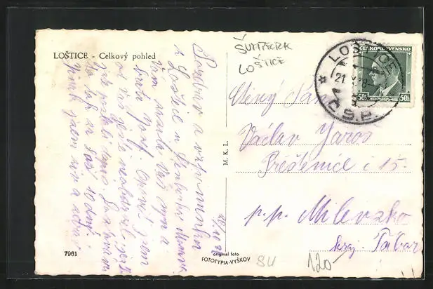 AK Lostice, Gesamtansicht des Ortes von Anhöhe