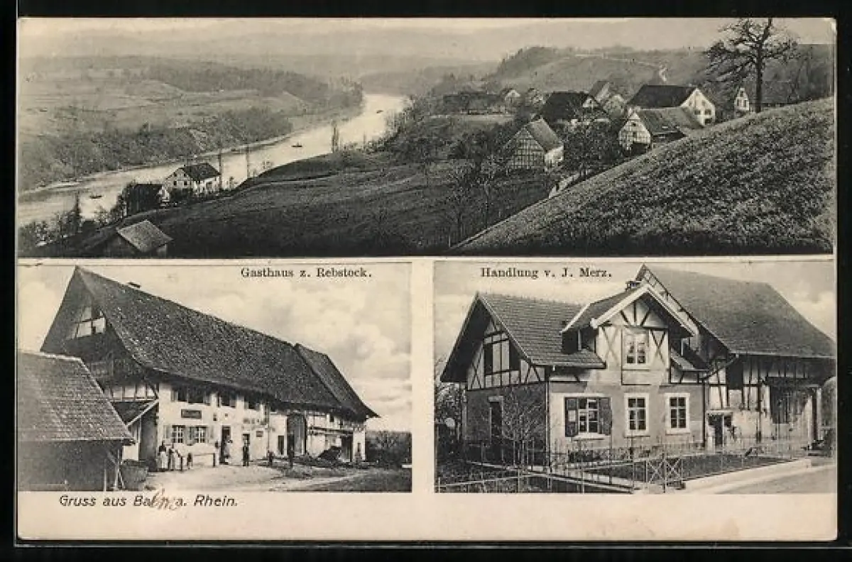 AK Lottstetten, Balm am Rhein, Gasthaus z. Rebstock, Handlung v. J. Merz, Ortsansicht