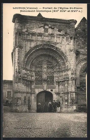 AK Loudun, Portail de l`Église St-Pierre, monument historique, XIIe, XIIIe et XVIe s.