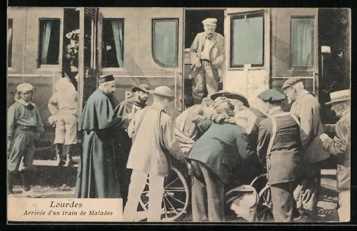 AK Lourdes, Arrivée d'un train de Malades