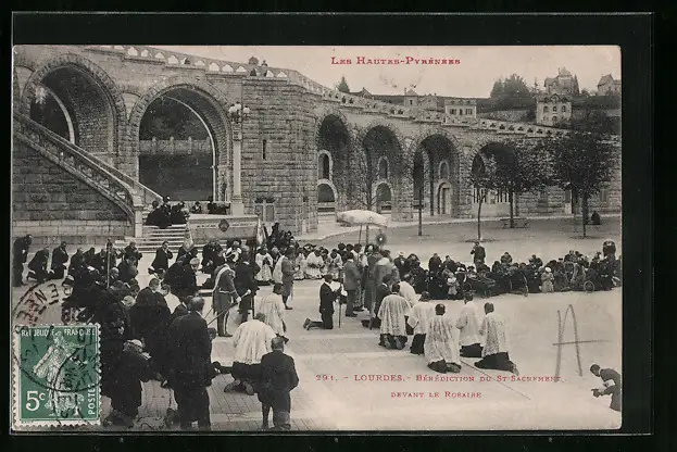 AK Lourdes, Benediction du St-Sacrement devant Le Rosaire